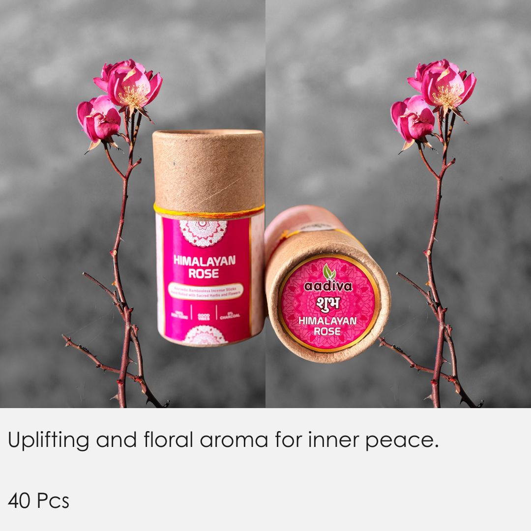 Rediscover serenity. Embrace nature. Choose Aadiva Himalayan Rose Bamboo-Less Incense Sticks.