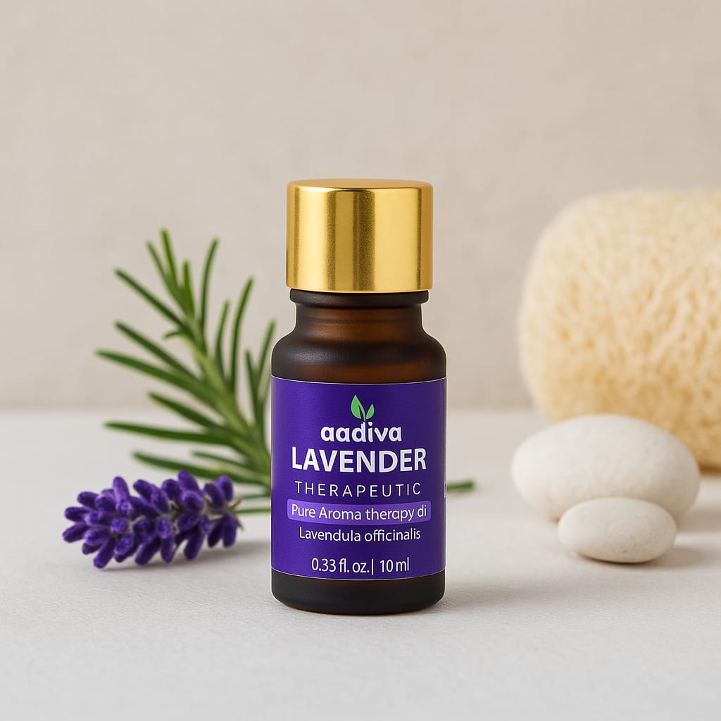 Lavender Essential Oil with a calming floral aroma that eases stress, improves sleep, and creates a tranquil atmosphere at home.