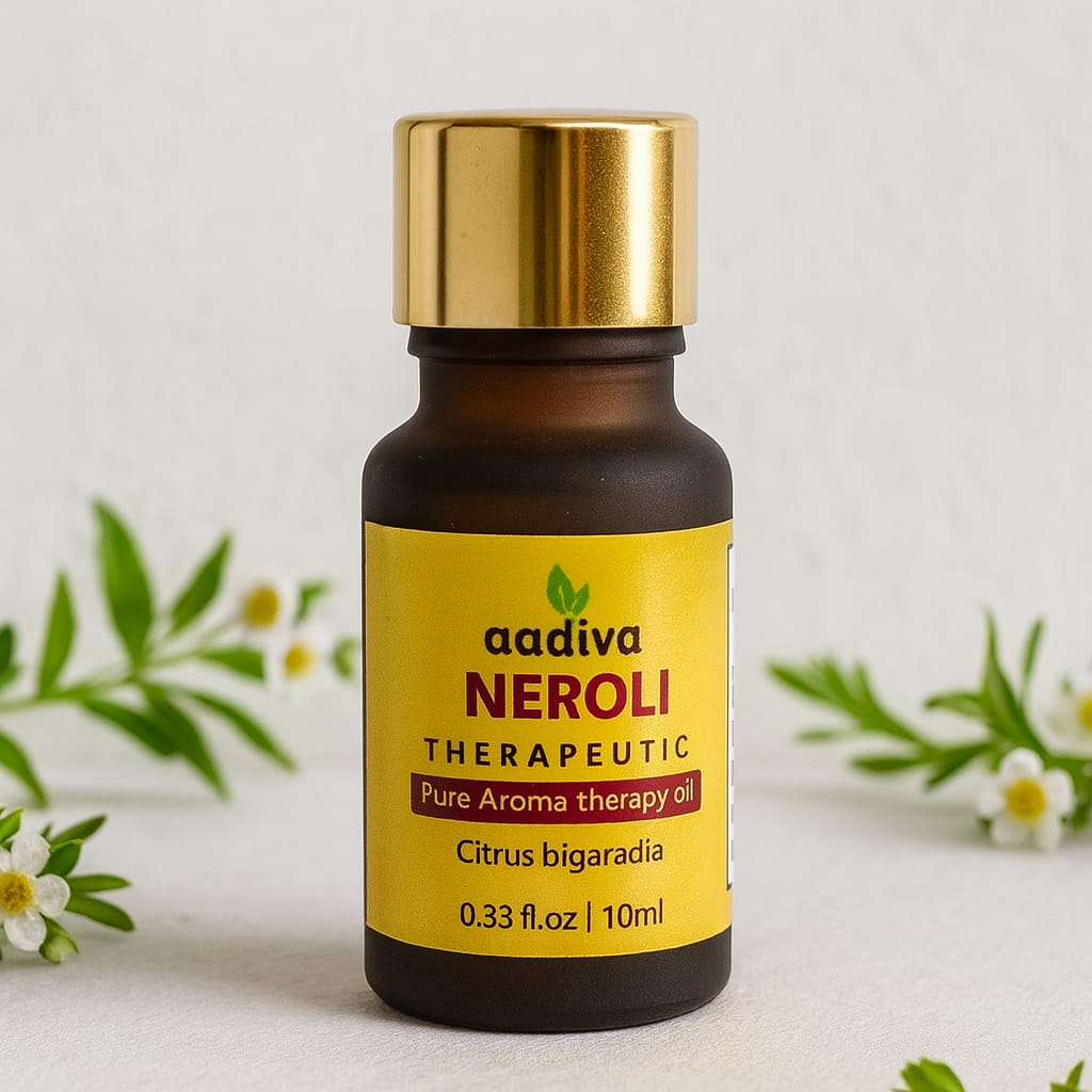 Neroli Essential Oil with a bright citrus-floral fragrance that uplifts mood, reduces stress, and creates a joyful, refreshing atmosphere.