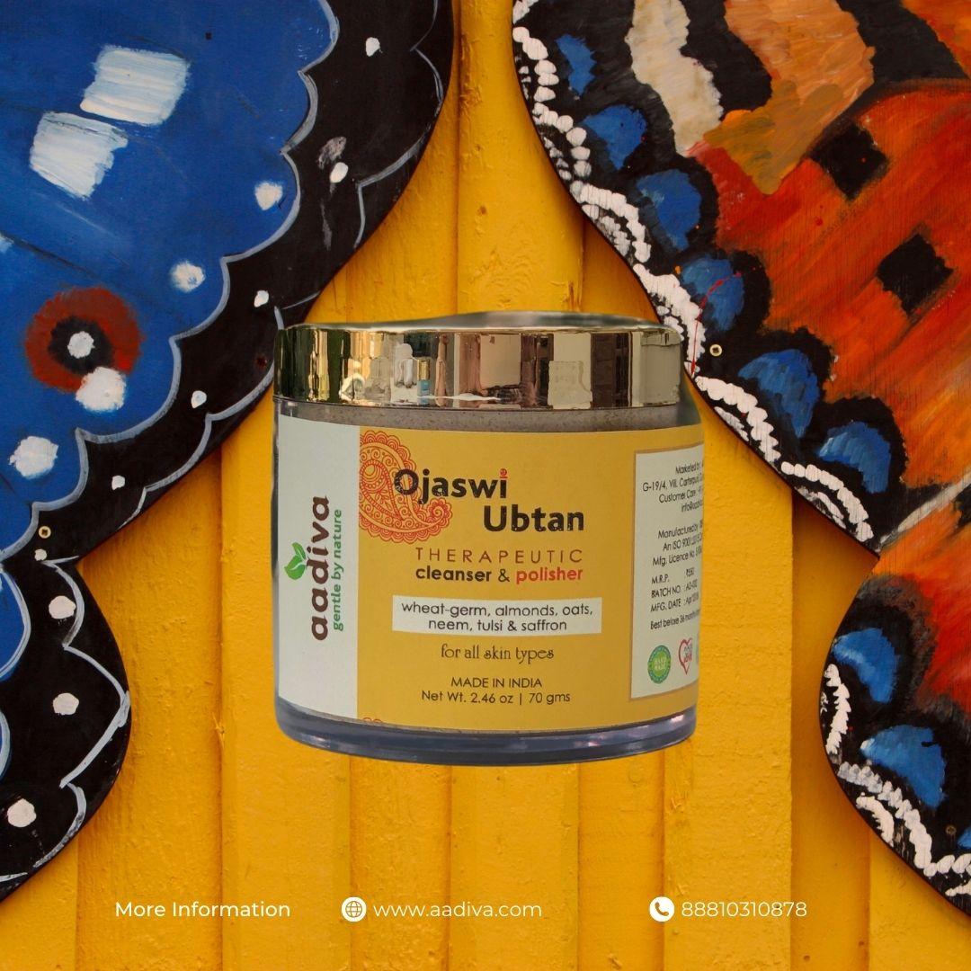 Ojaswi Ubtan-: this ubtan is made from oat flour, wheat germ powder, saffron and for exfoliation we use crushed almonds meal. It has active natural ingredients like fenugreek, orange peel powder and turmeric powder. It is excellent for tan removal.