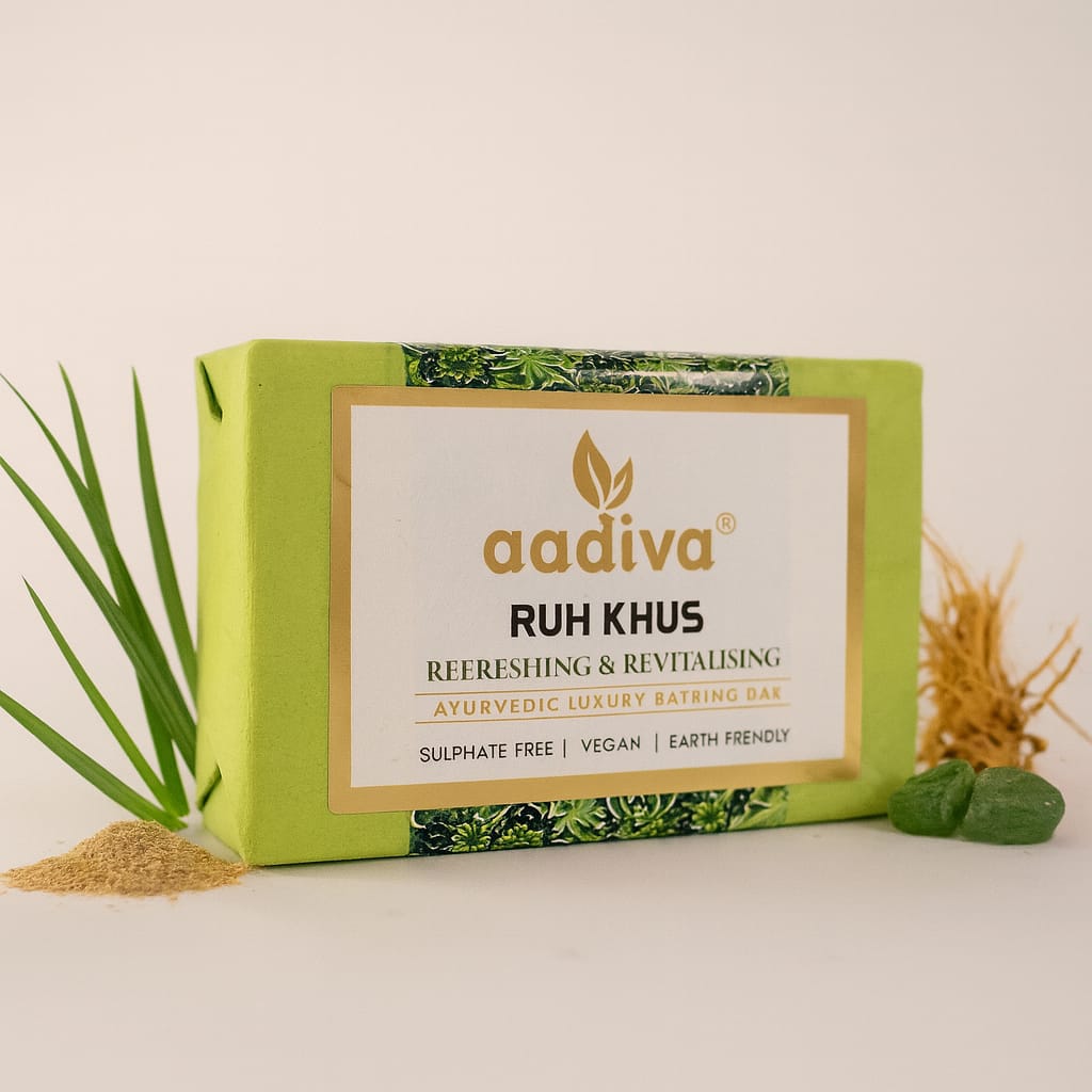 Aadiva Rooh Khus is your royal bath in the fragrance of tranquillity. Indian Vetiver (popularly known as Khus) is enriched with soothing and cooling properties to calm your skin and uplift your mood with its woody earthy undertone of precious wood, it is love at first whiff.